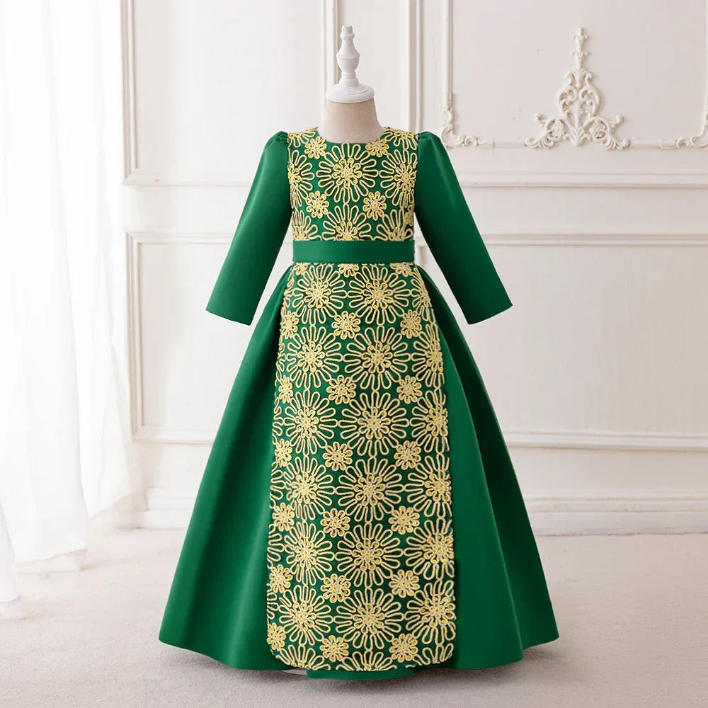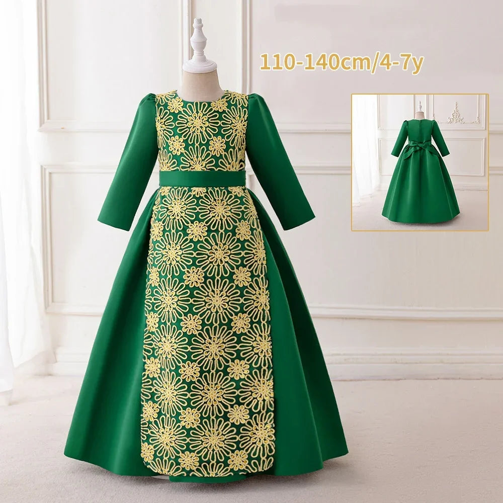 LM205 Girls Eid Dress – Long Sleeve Modest Muslim Party Gown, Embroidered, Full Length (4–7Y)