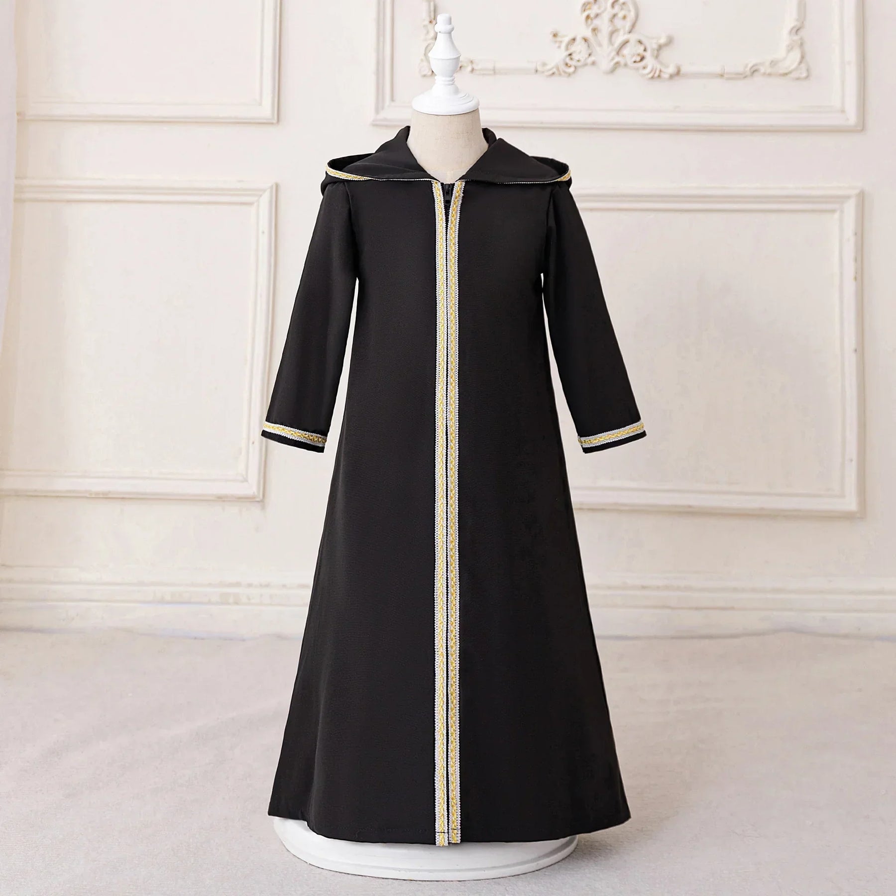 LM211 Girls Eid Dress – Long Sleeve Modest Muslim Party Gown, Embroidered, Full Length (4–7Y) - AMSL23-黑色-Black-110cm/4Y LumosModesty