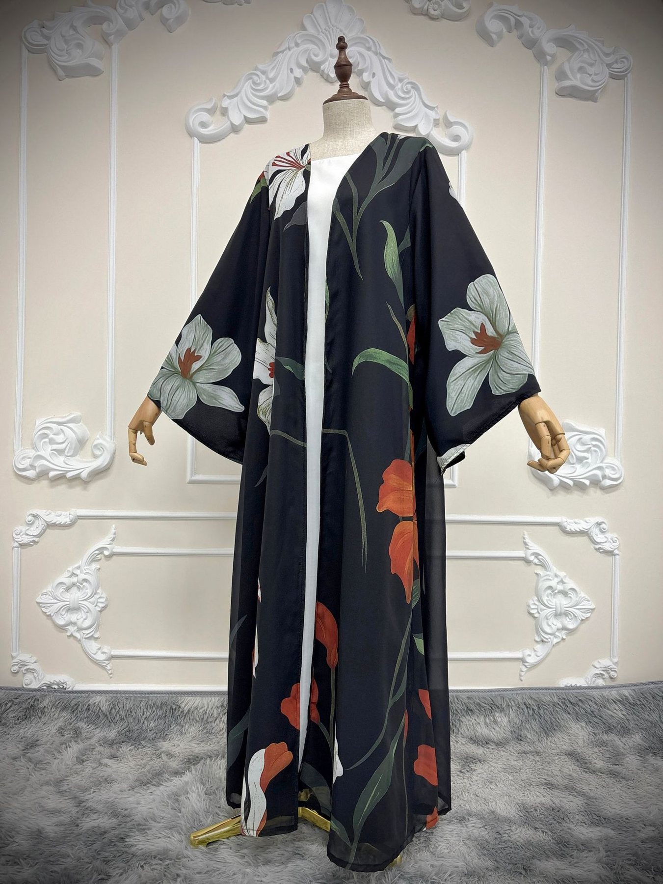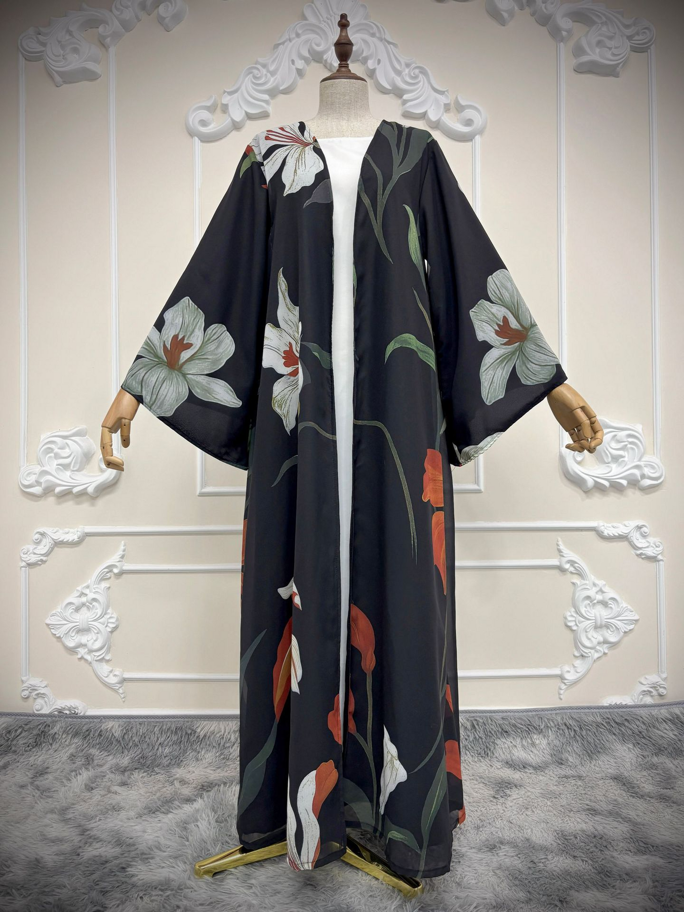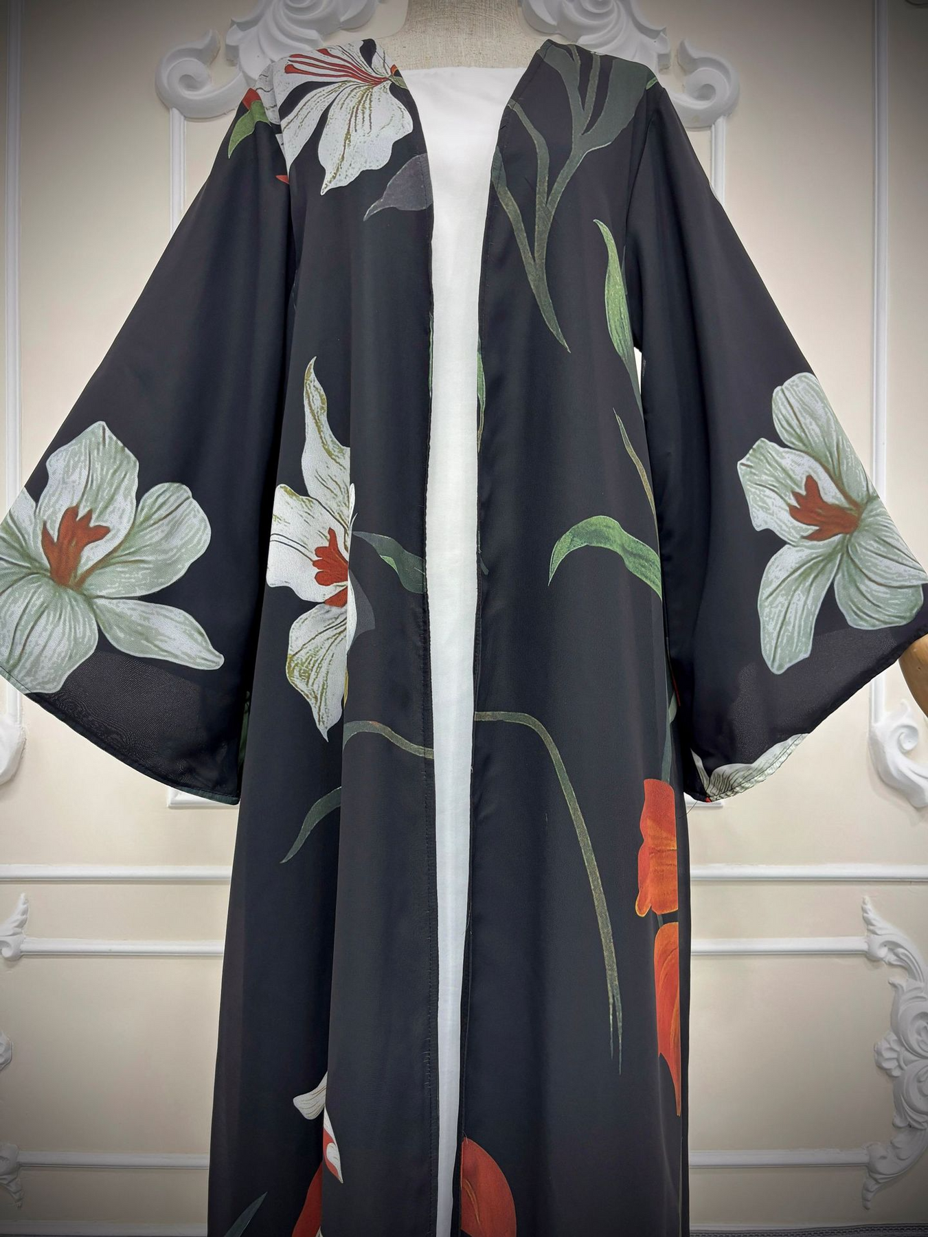 • Style: Printed abaya cardigan, Islamic modest wear, Muslim fashion