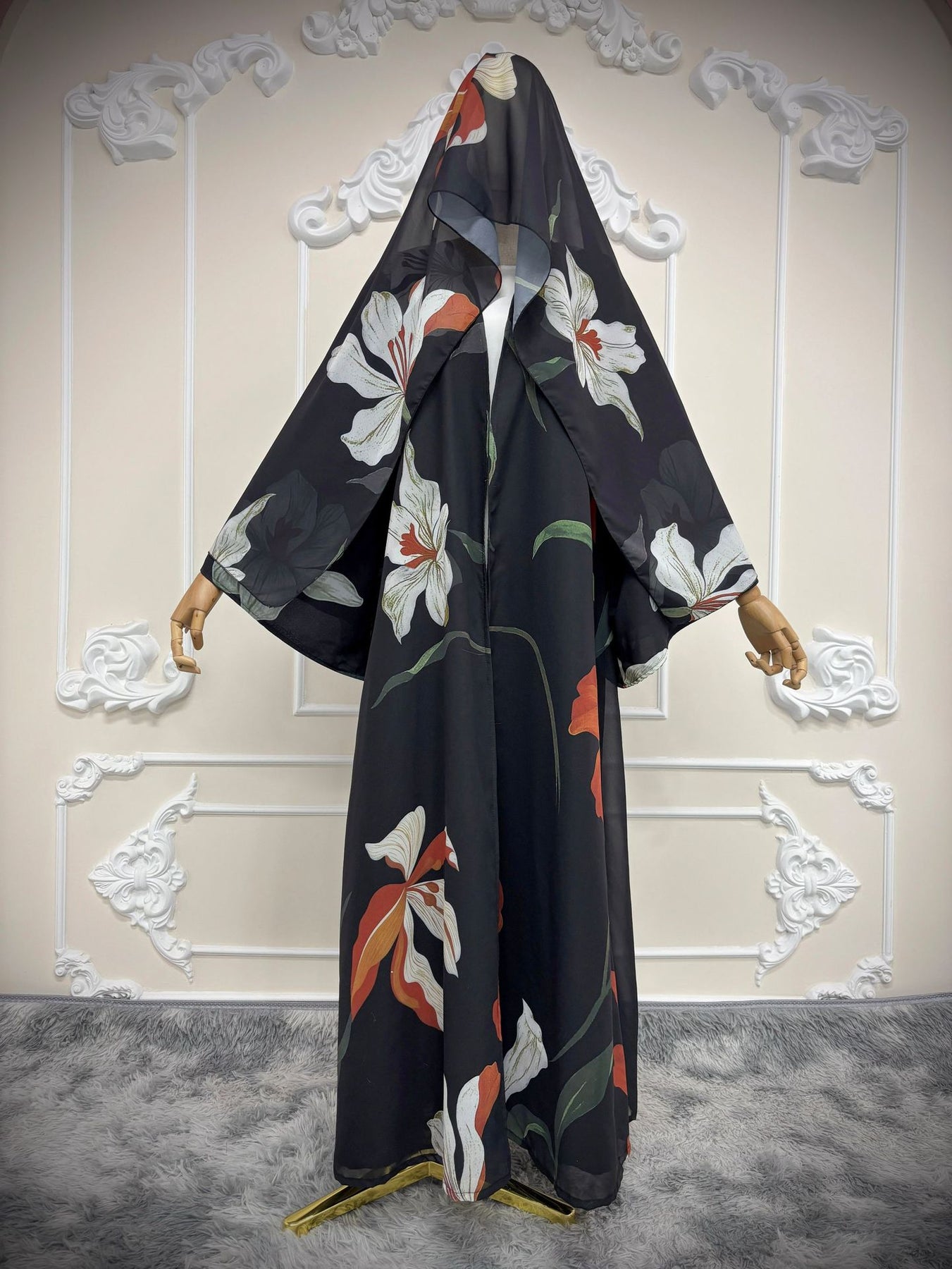 • Open-Front Abaya Style: Flowing cardigan robe for effortless full-length modest coverage