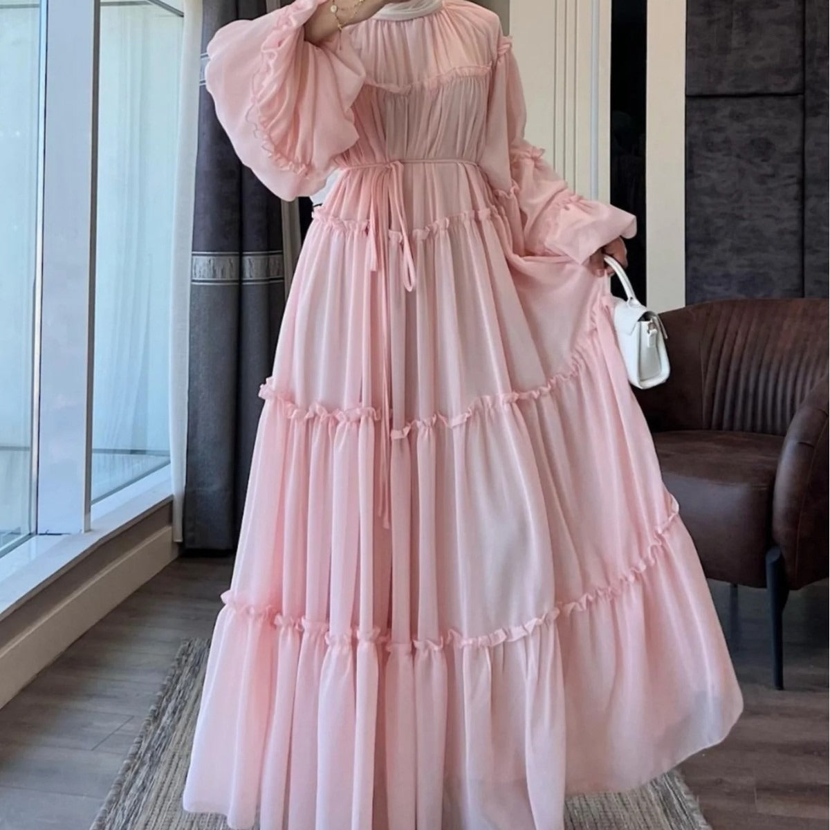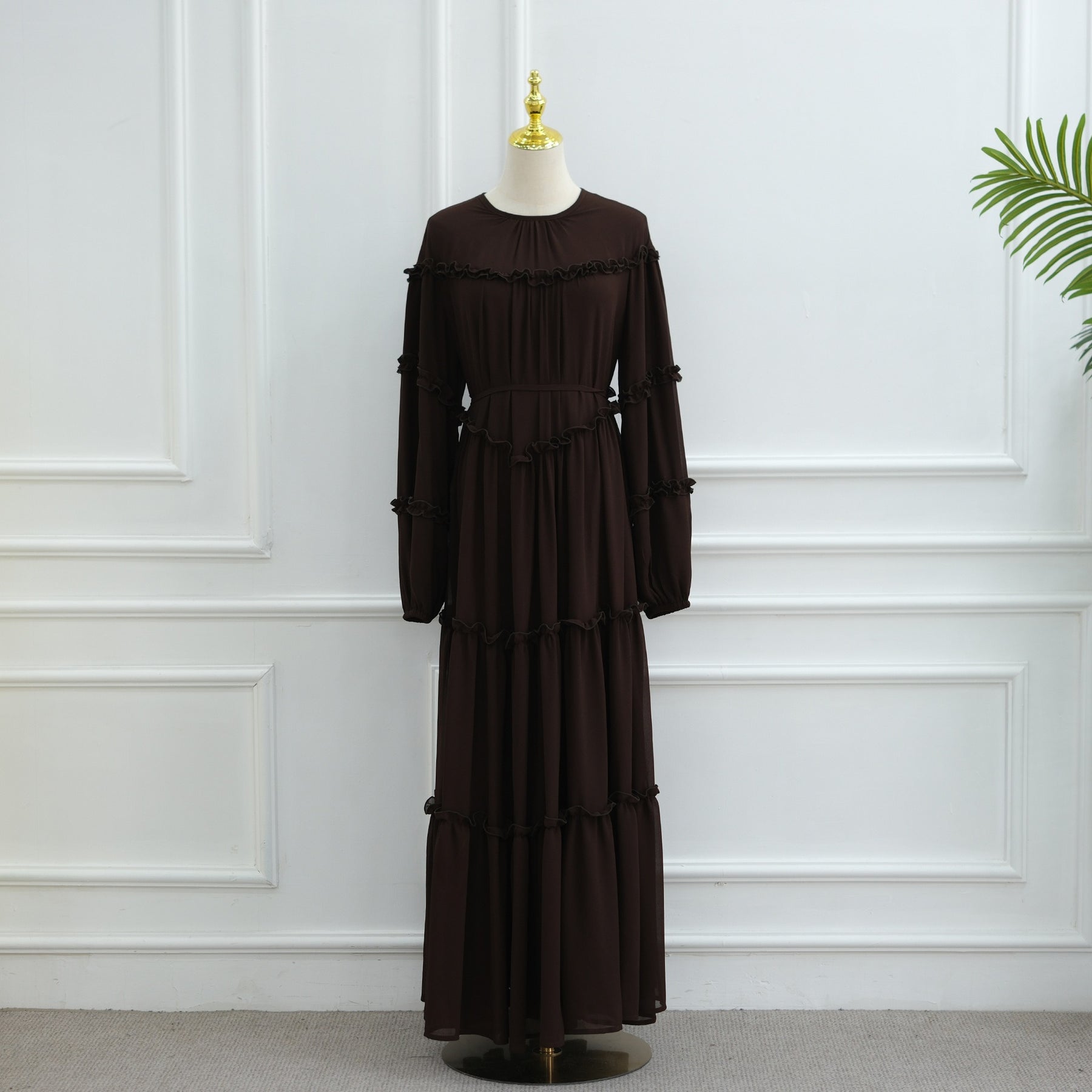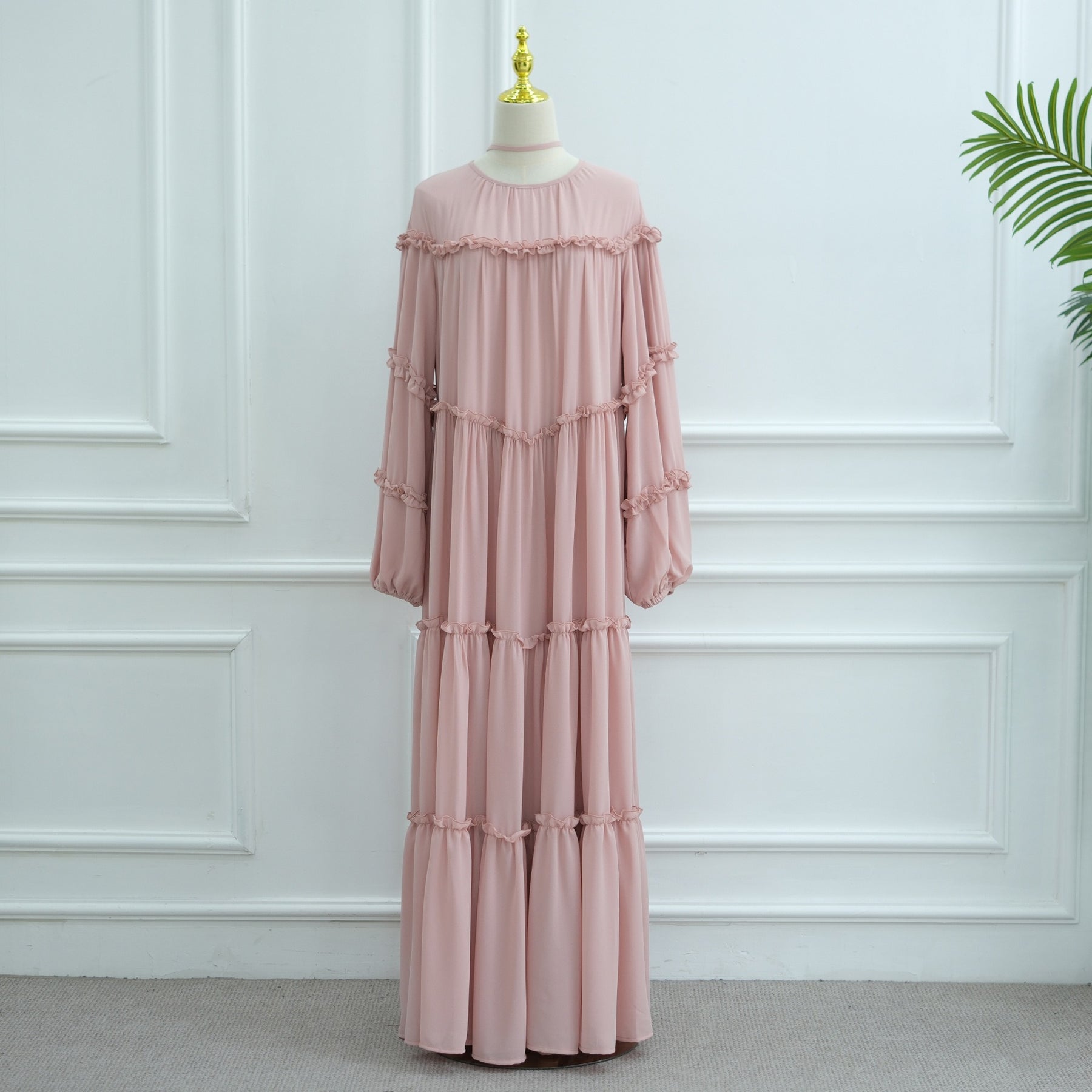 LM318 Luxury Tiered Abaya Dress - Long Sleeve Modest Fashion