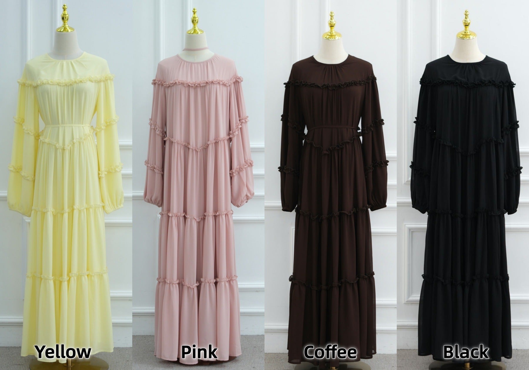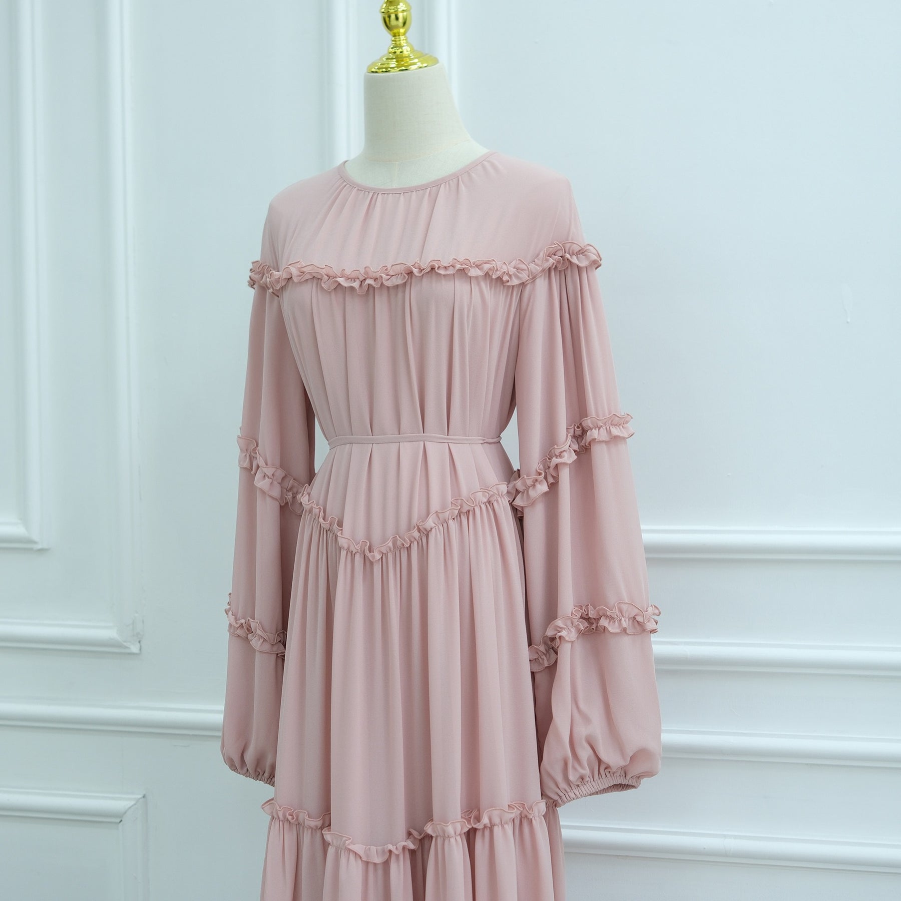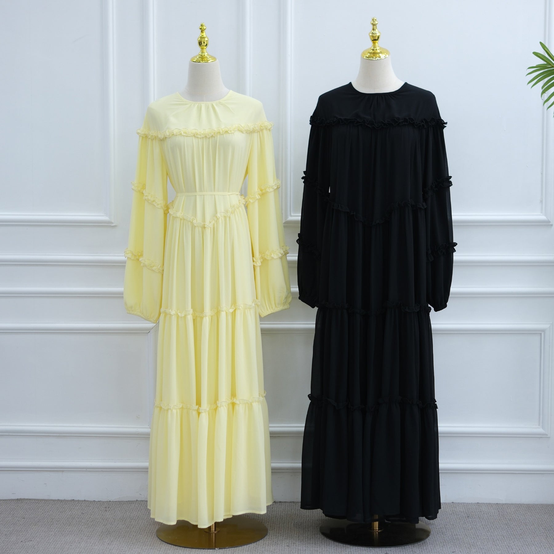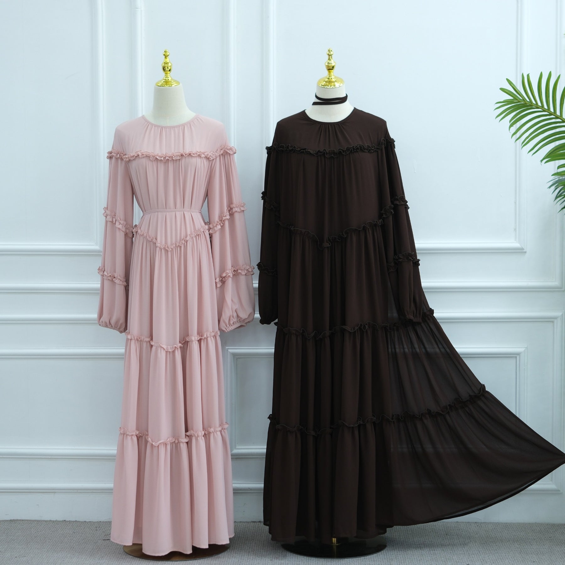 LM318 Luxury Tiered Abaya Dress - Long Sleeve Modest Fashion