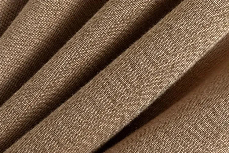 LM221 Abaya 3-Piece Set – Cardigan, Mock-Neck Top & Wide-Leg Pants with Geometric Jacquard Cuffs & Hem | Modest Winter Layering - LumosModesty