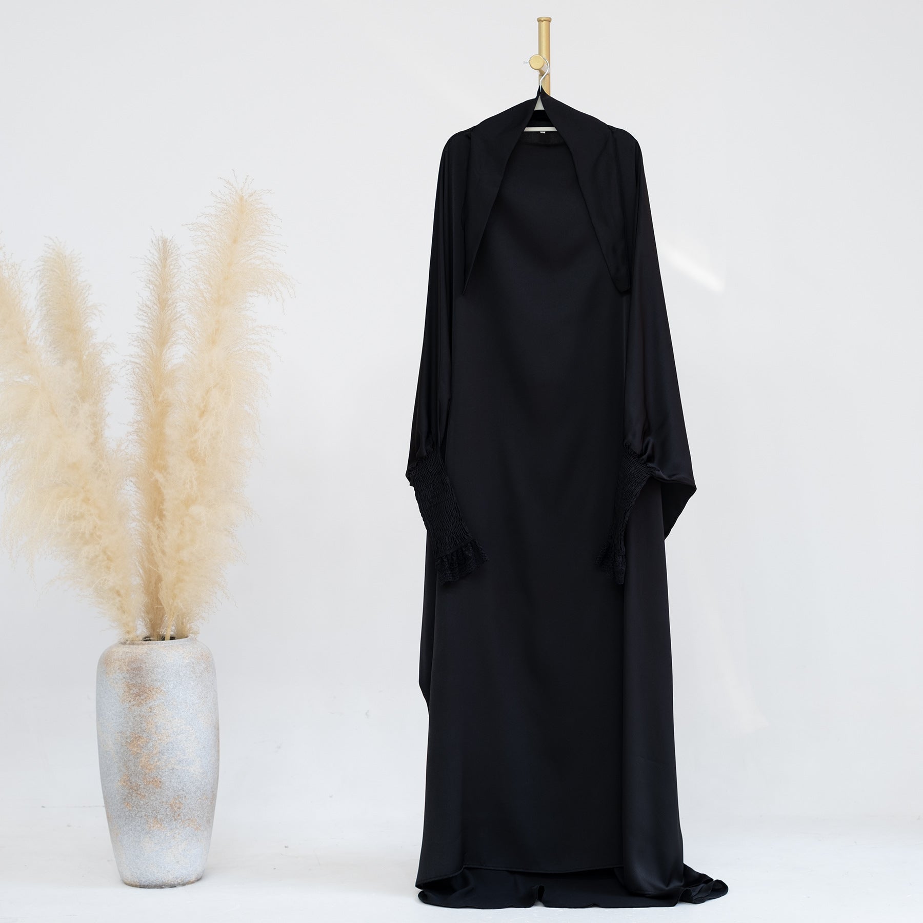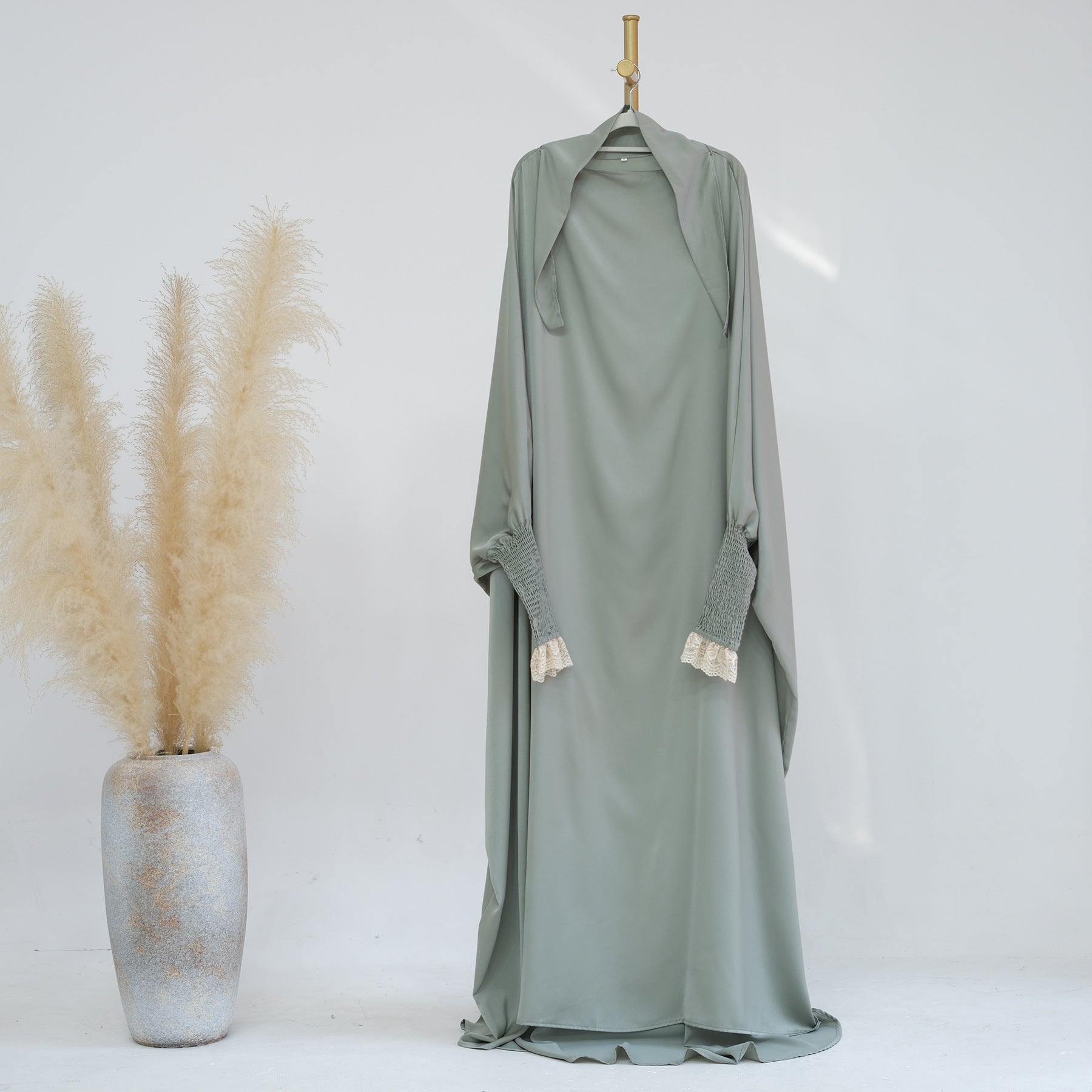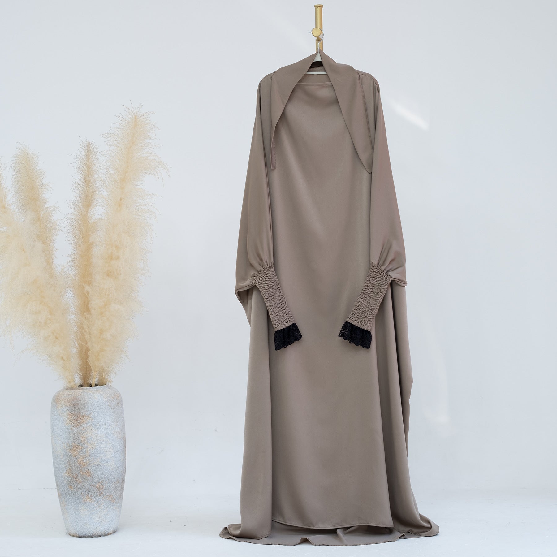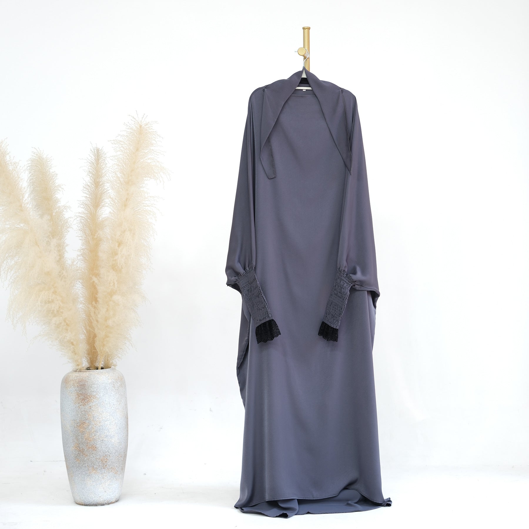 Embrace modesty with elegance. Add this essential lace cuff jilbab to your Islamic wardrobe today.