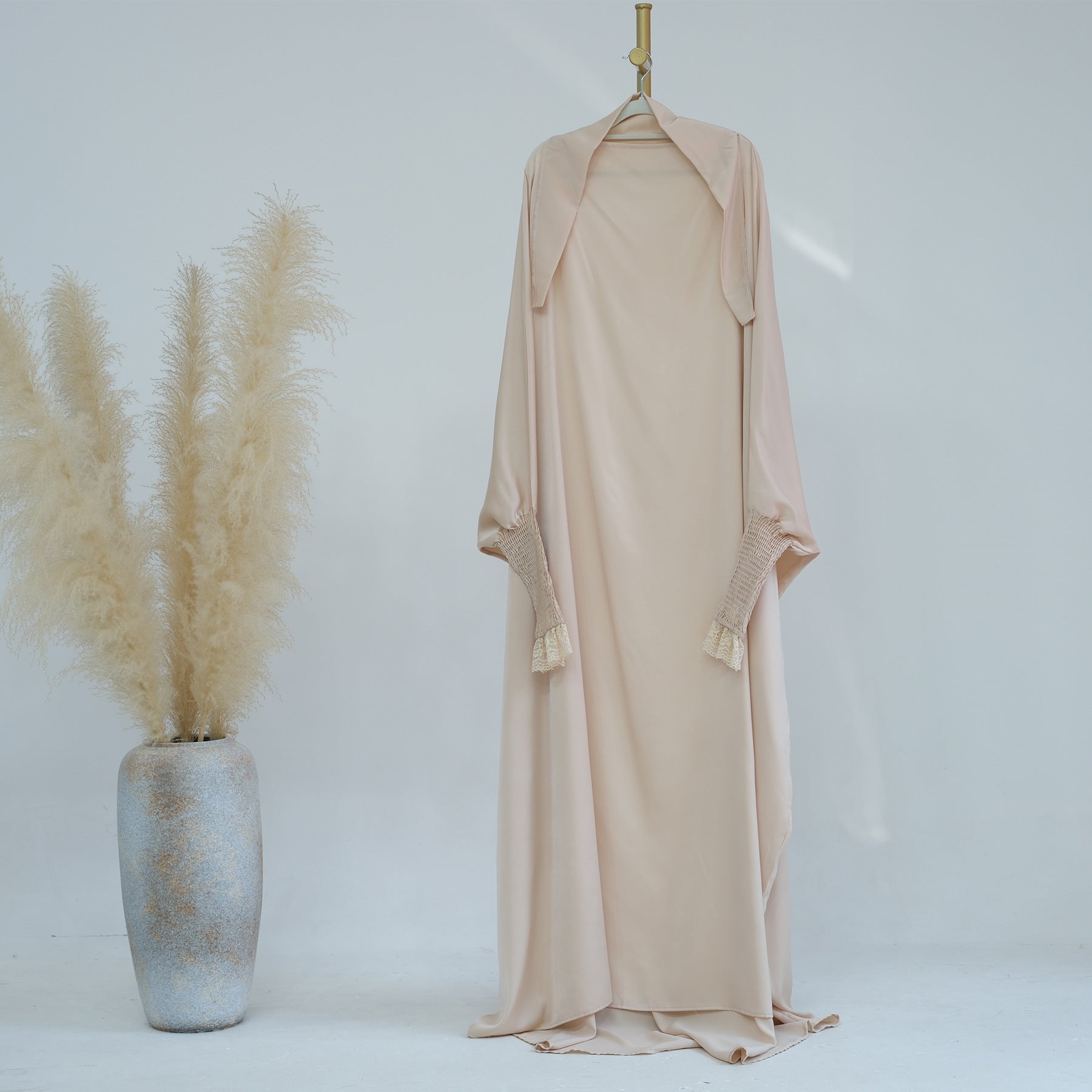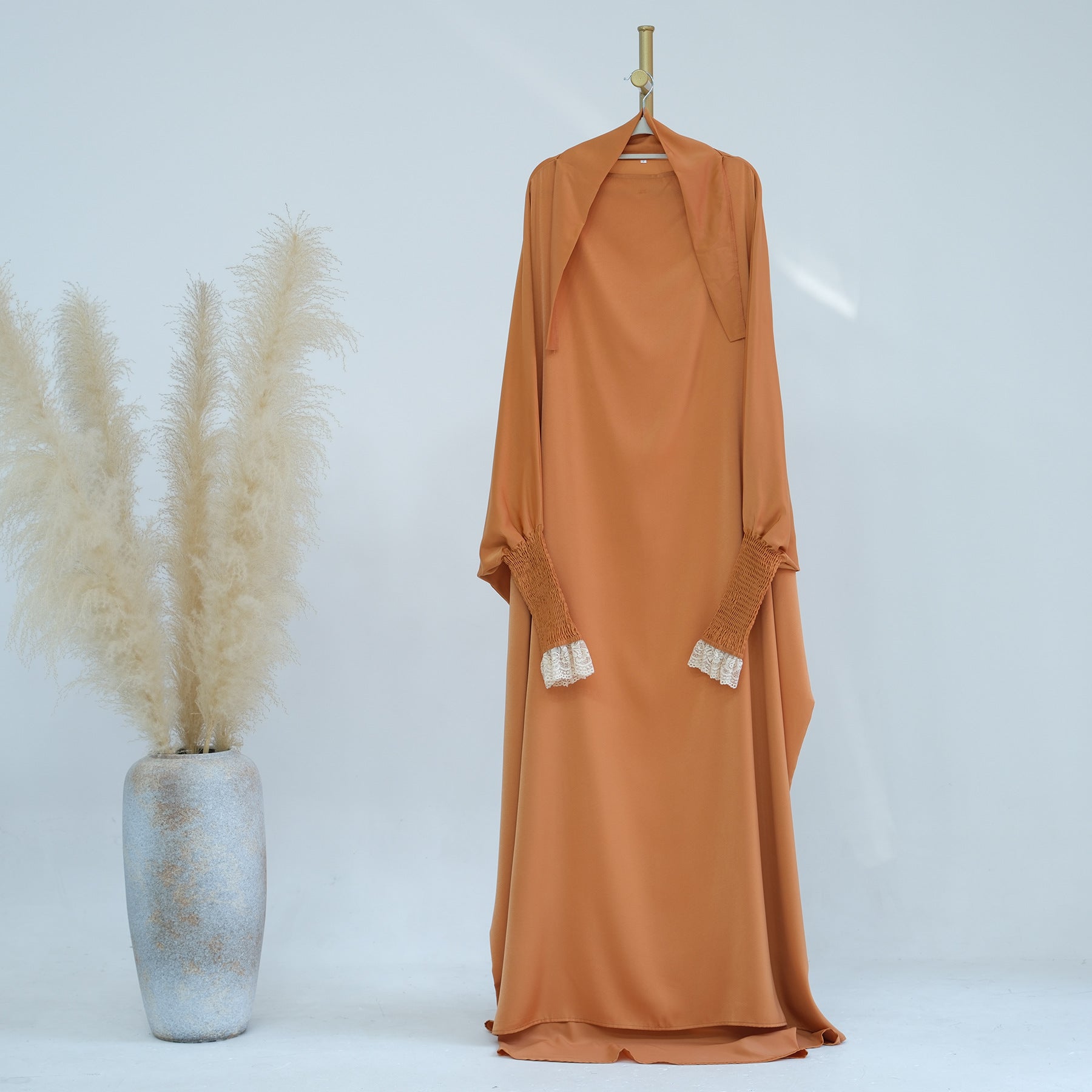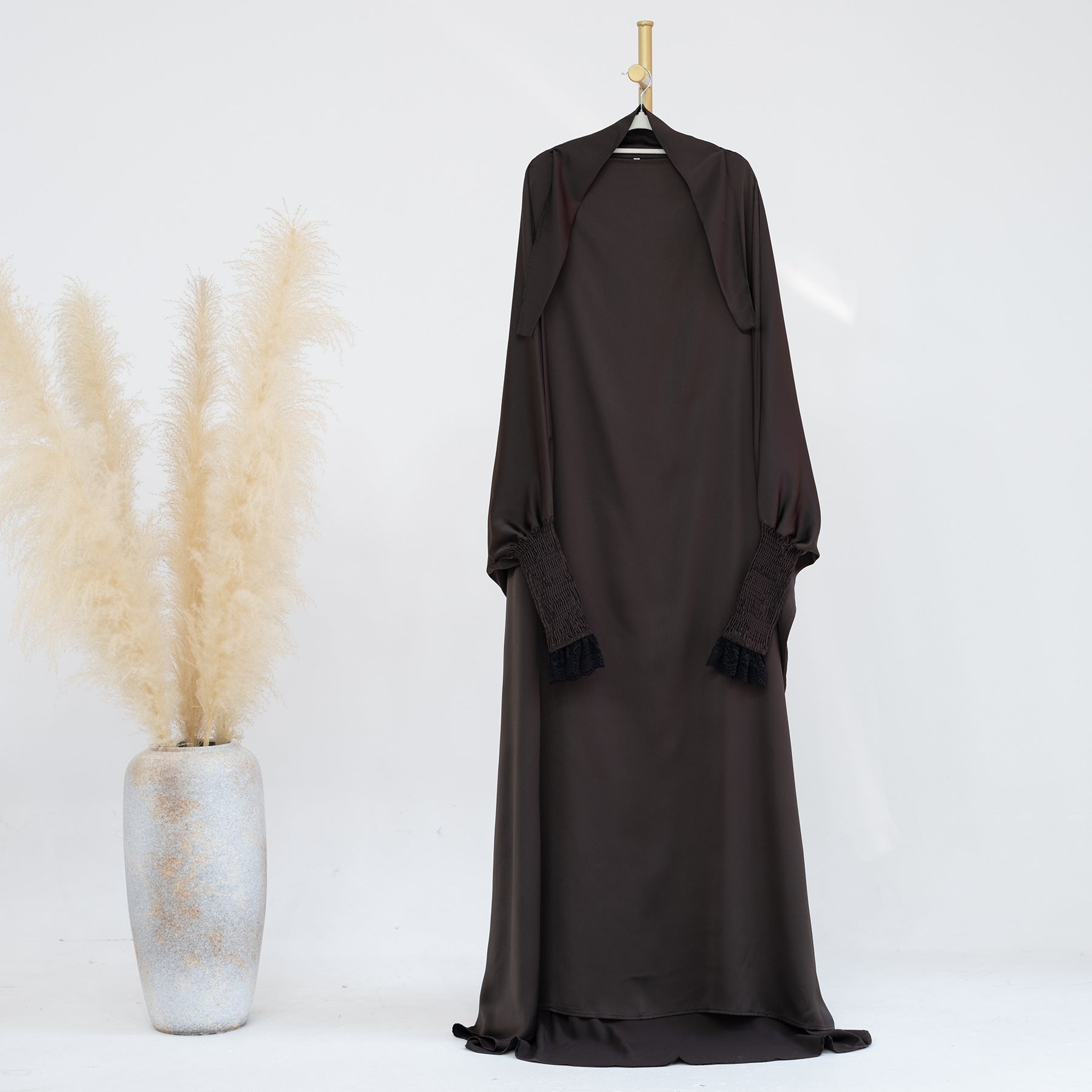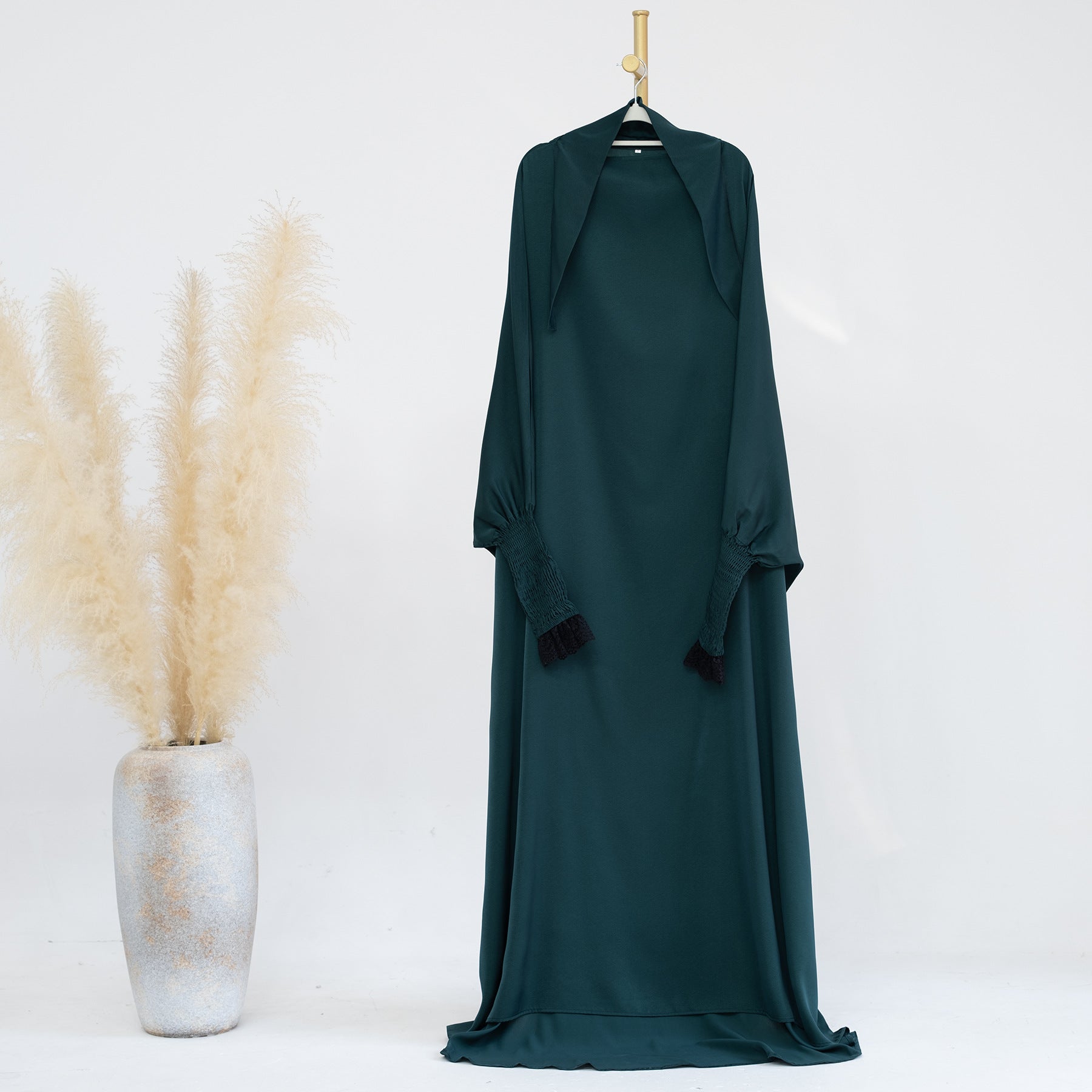 Whether you're attending mosque, celebrating special occasions, or enjoying family gatherings, this lace cuff jilbab abaya dress is your go-to choice for modest Islamic fashion. The timeless design with delicate lace detailing pairs beautifully with your favorite hijab, adding sophistication to your modest wardrobe.