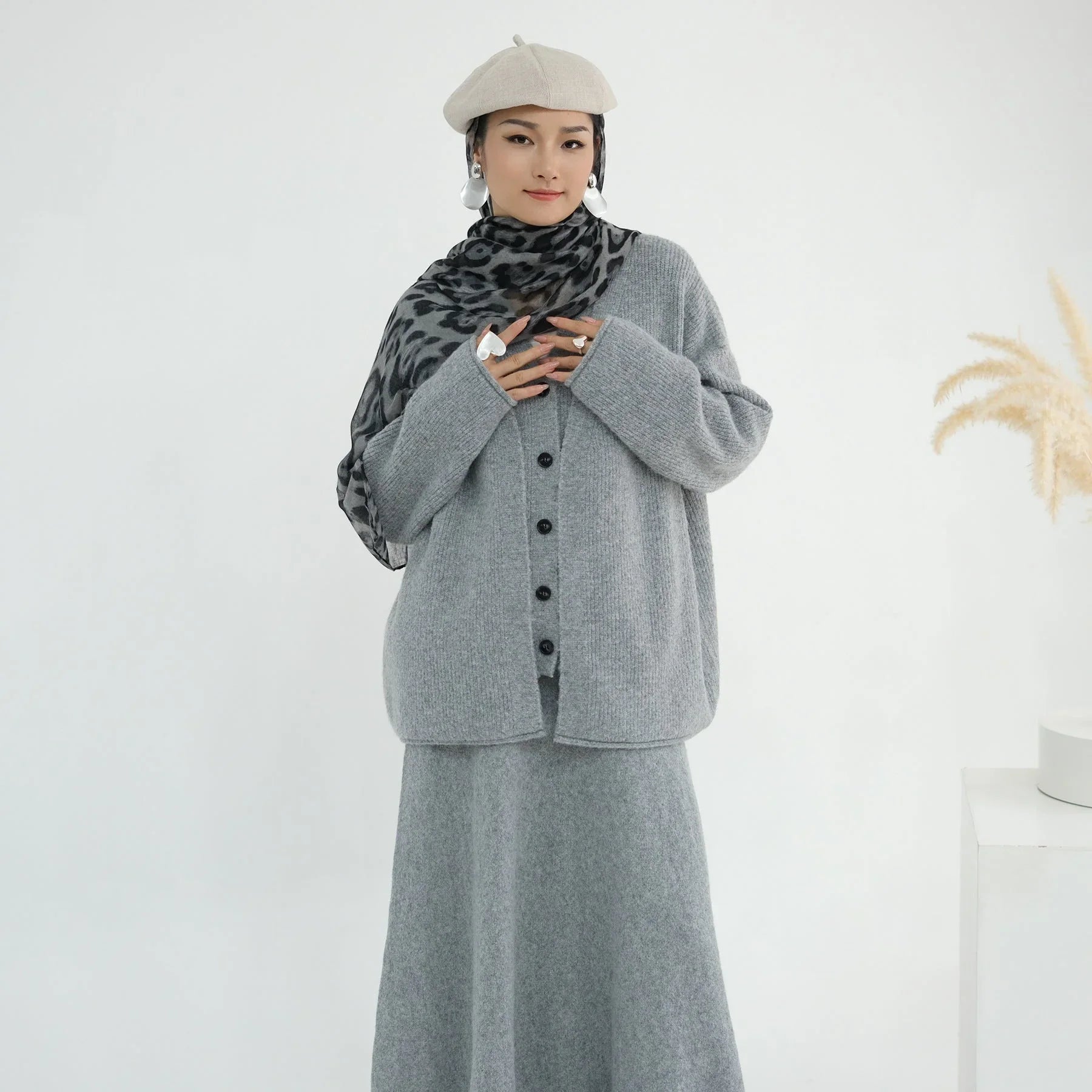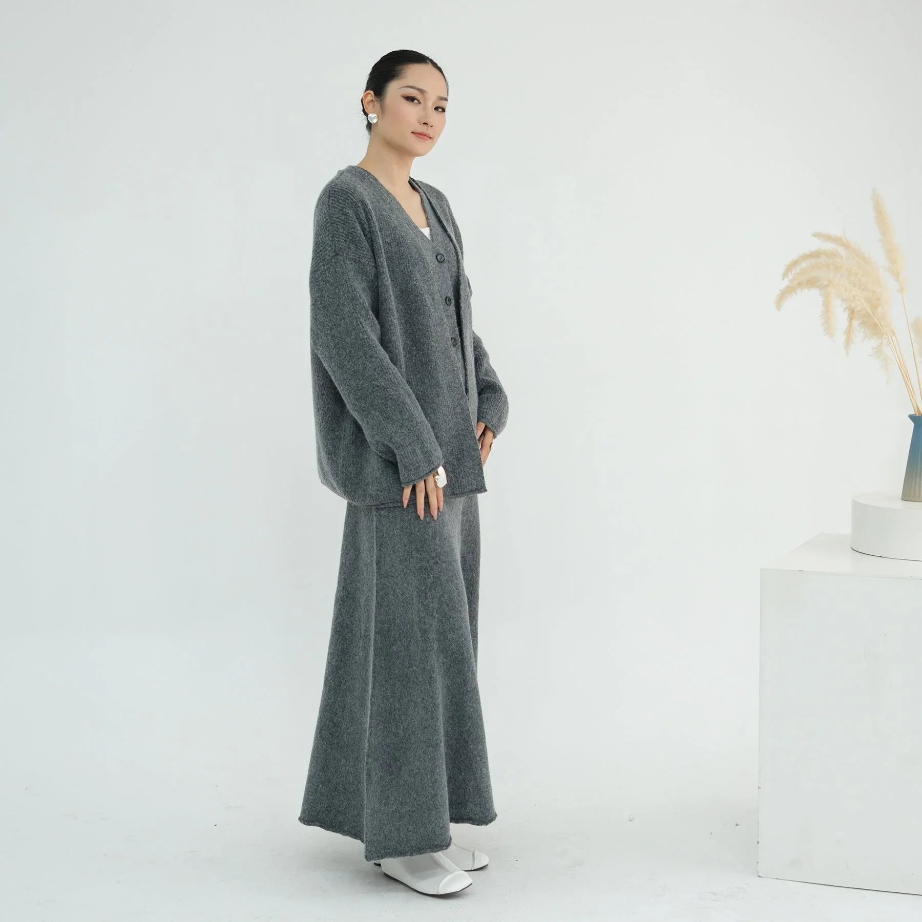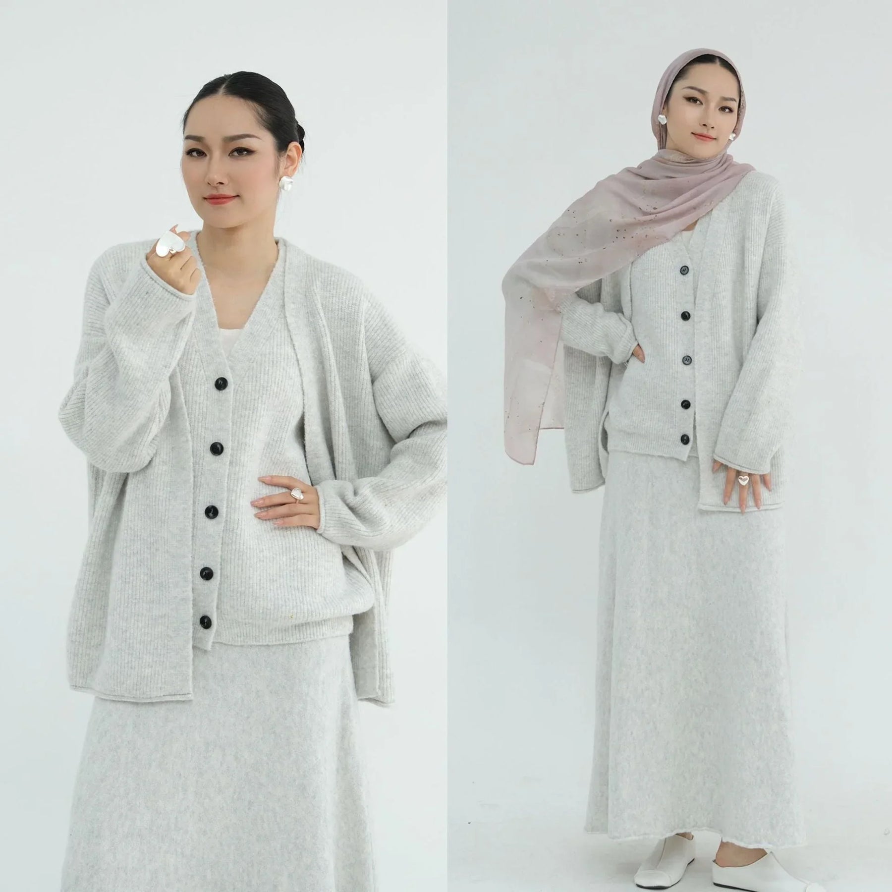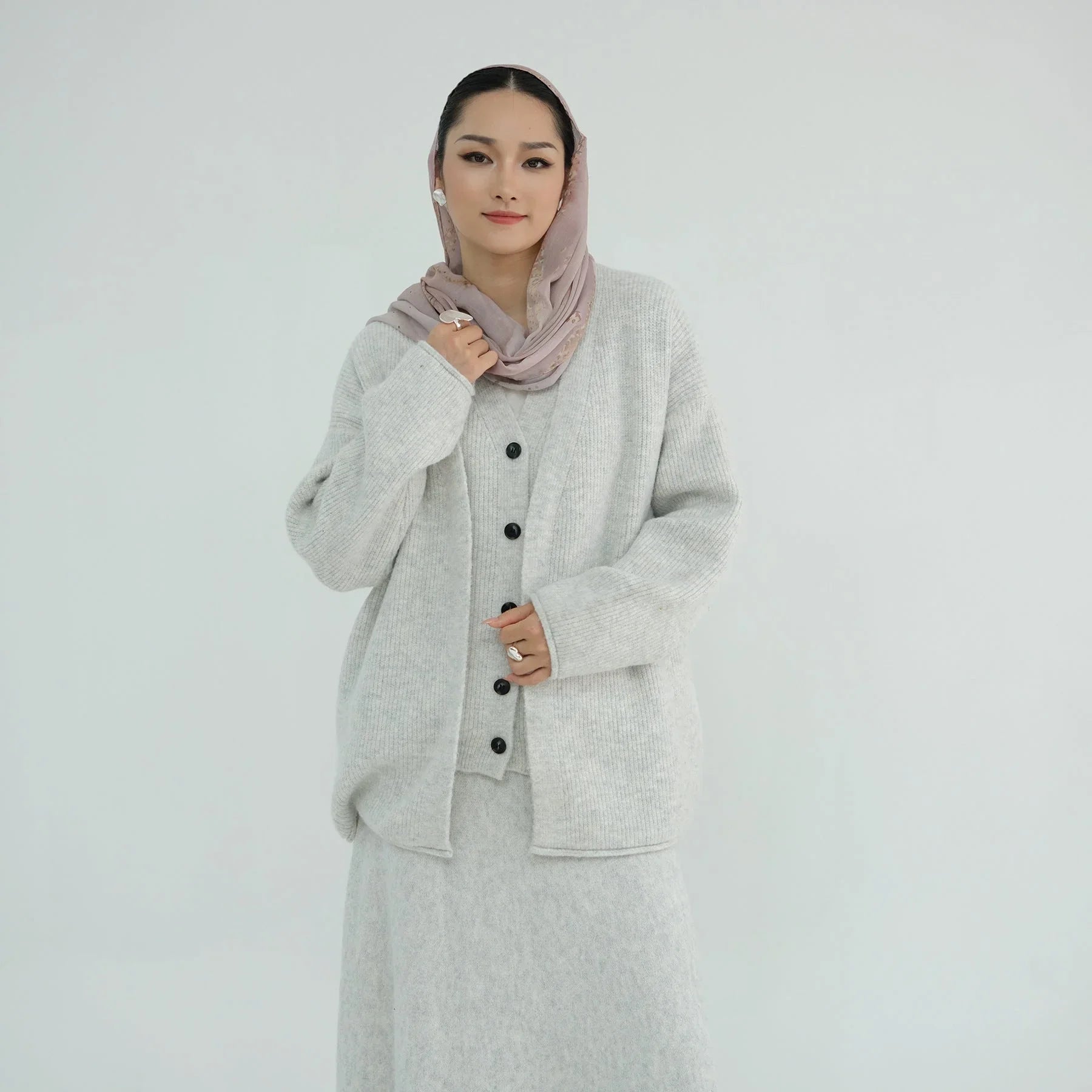 LM225 Winter Knit 3-Piece Abaya Set for Muslim Women – Modest Co-ord