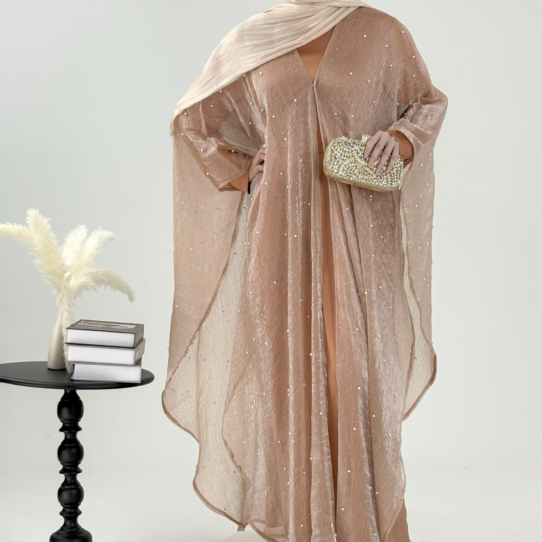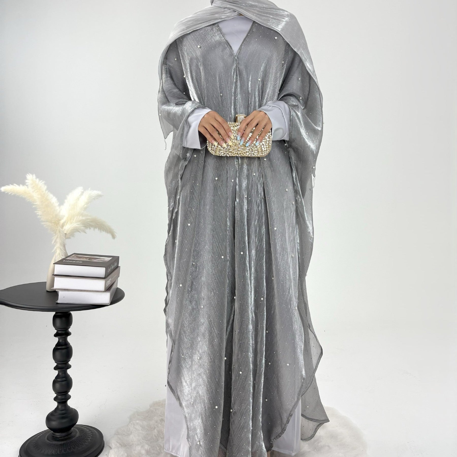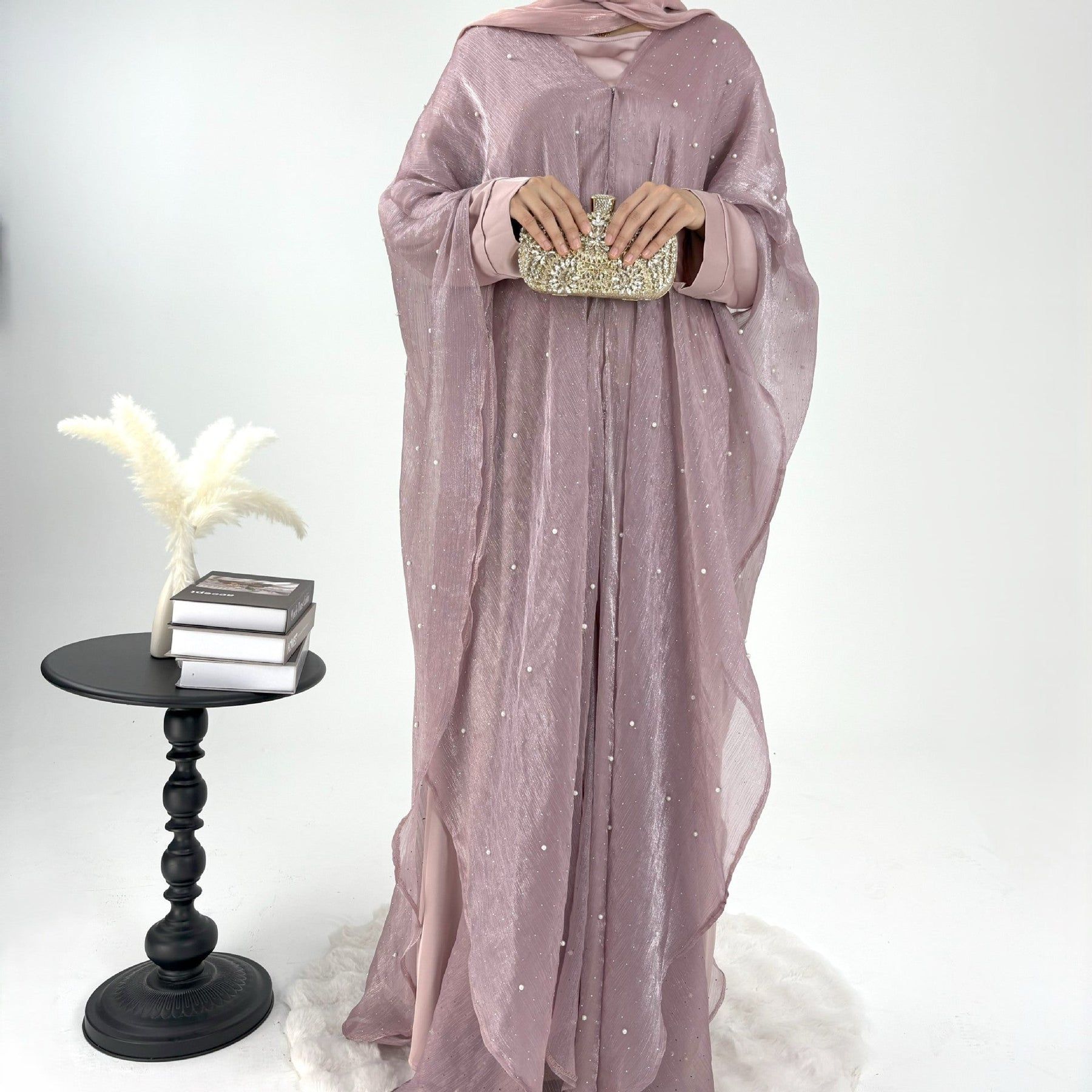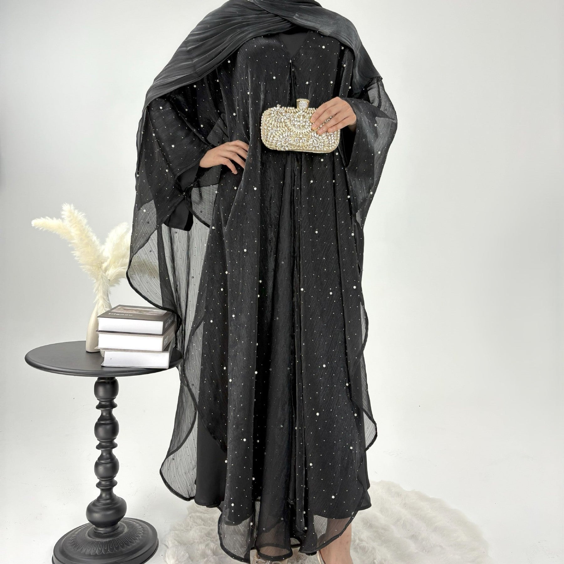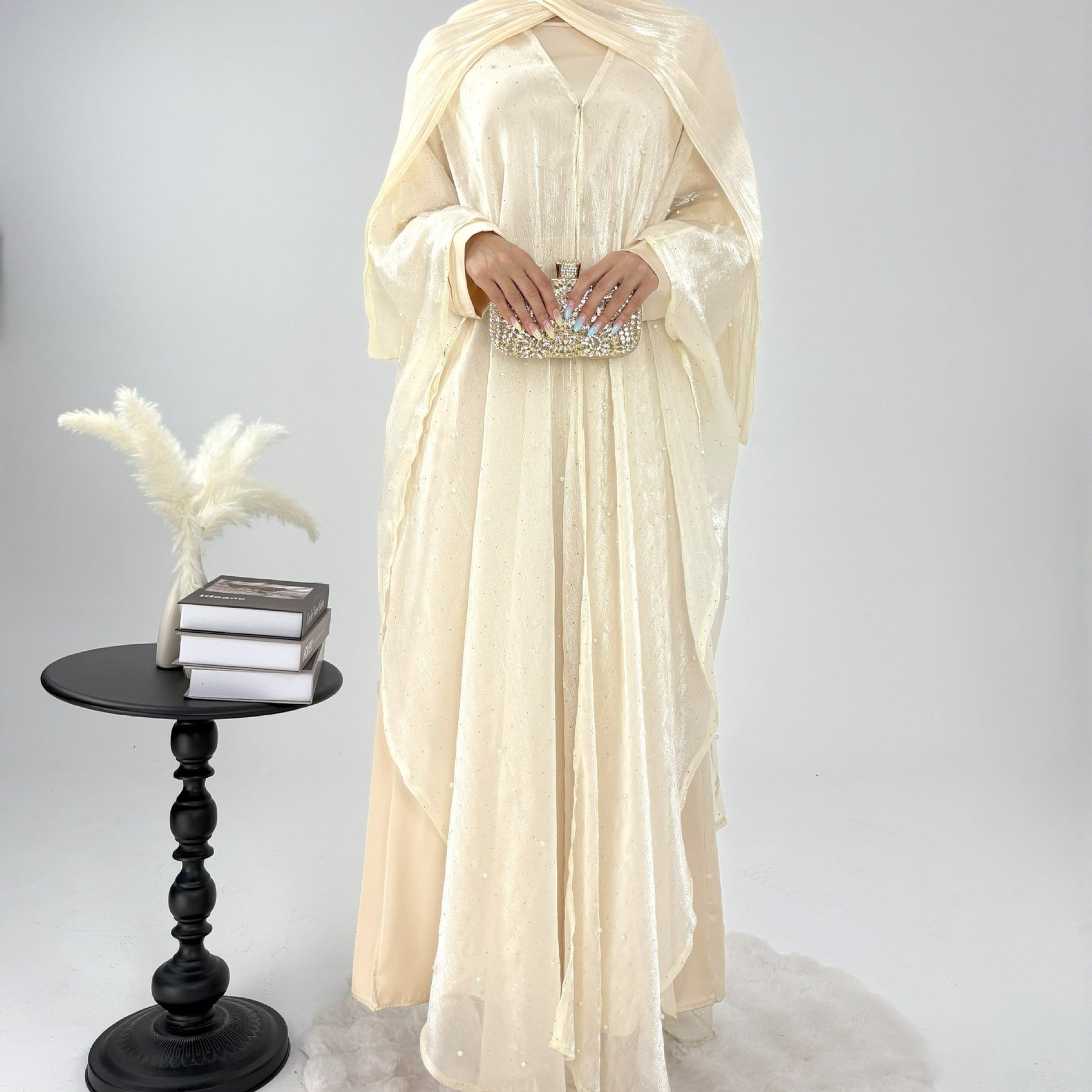 • Style: Pearl starry sky embellished modest dress set, Islamic elegant wear