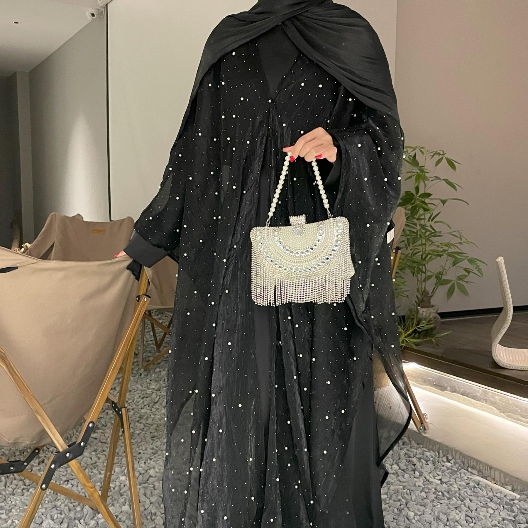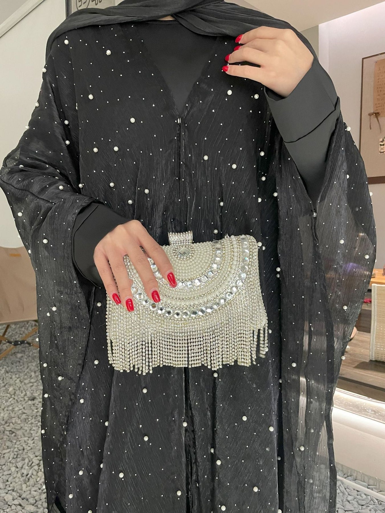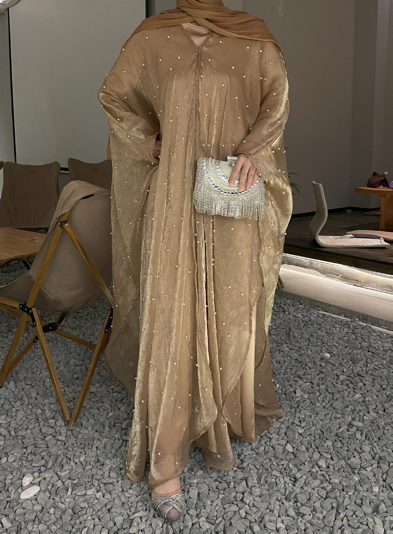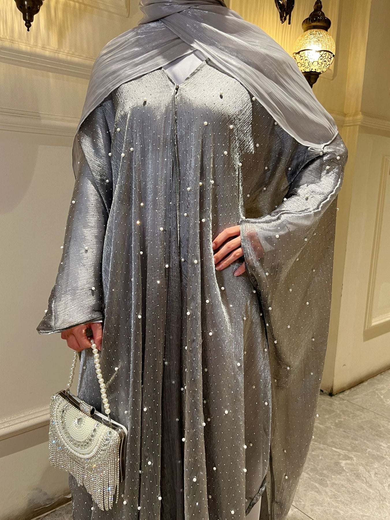 • Style: Pearl starry sky embellished modest dress set, Islamic elegant wear