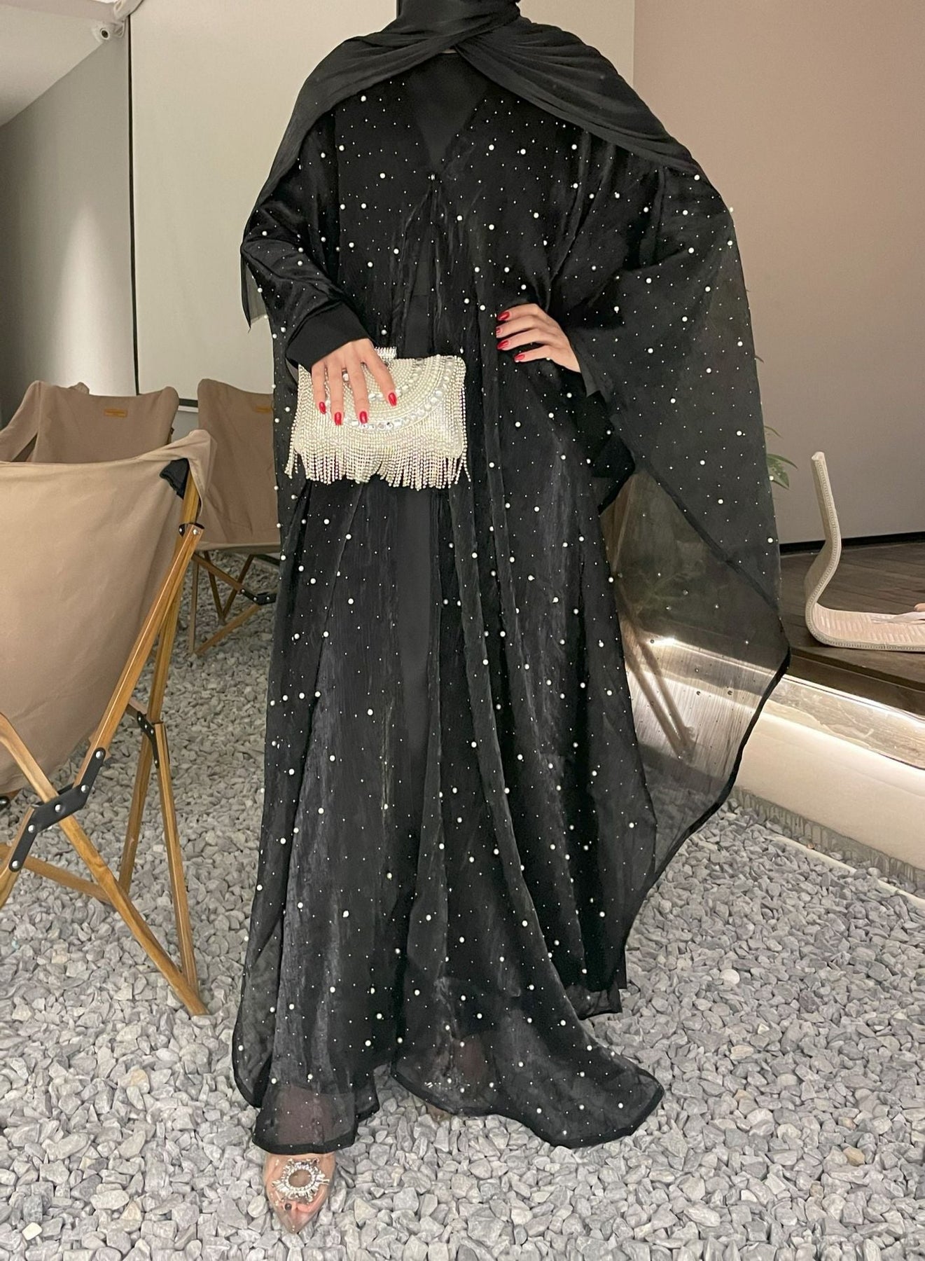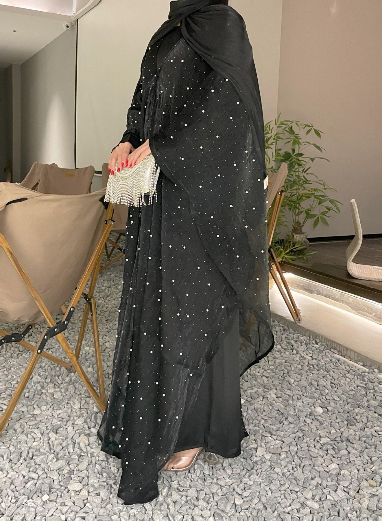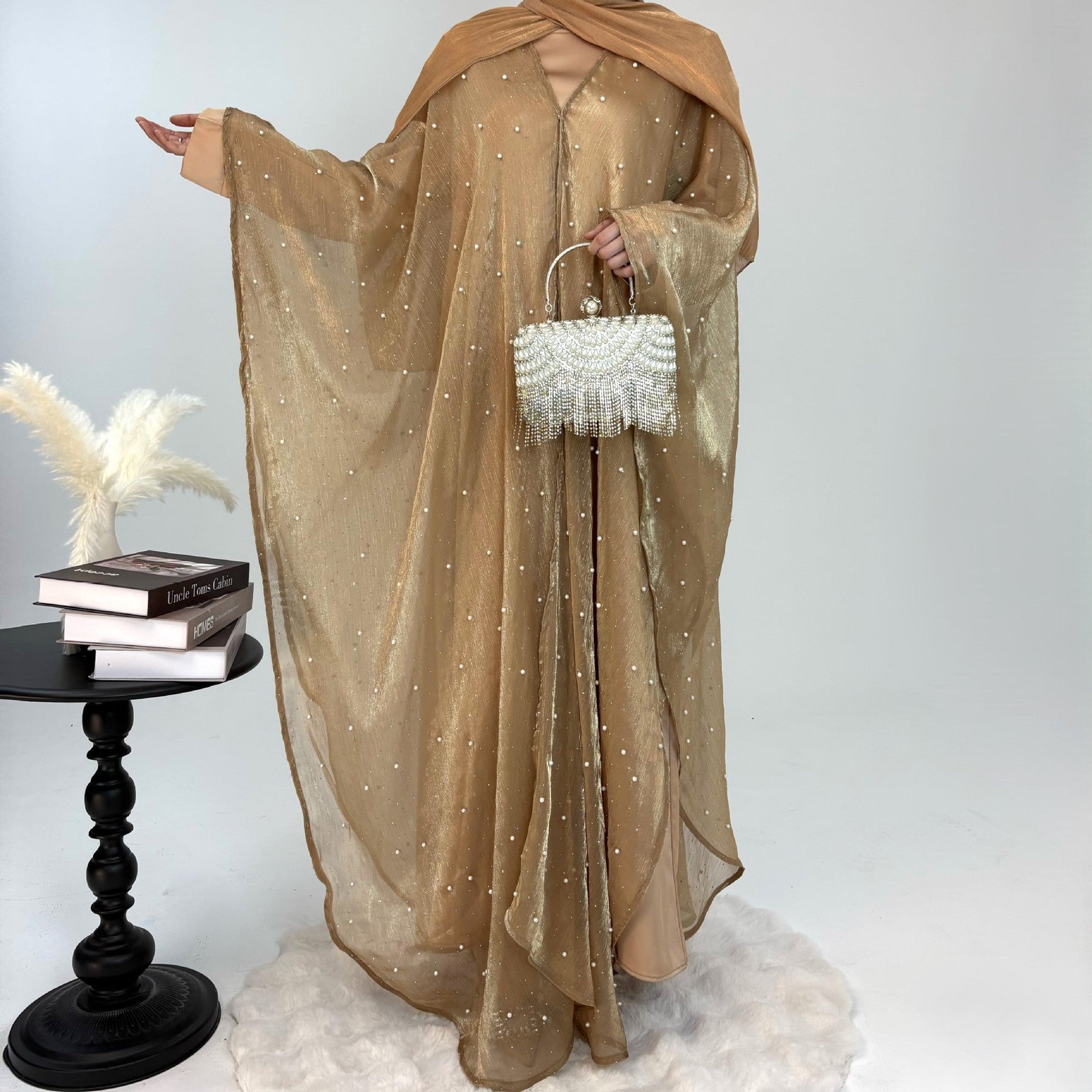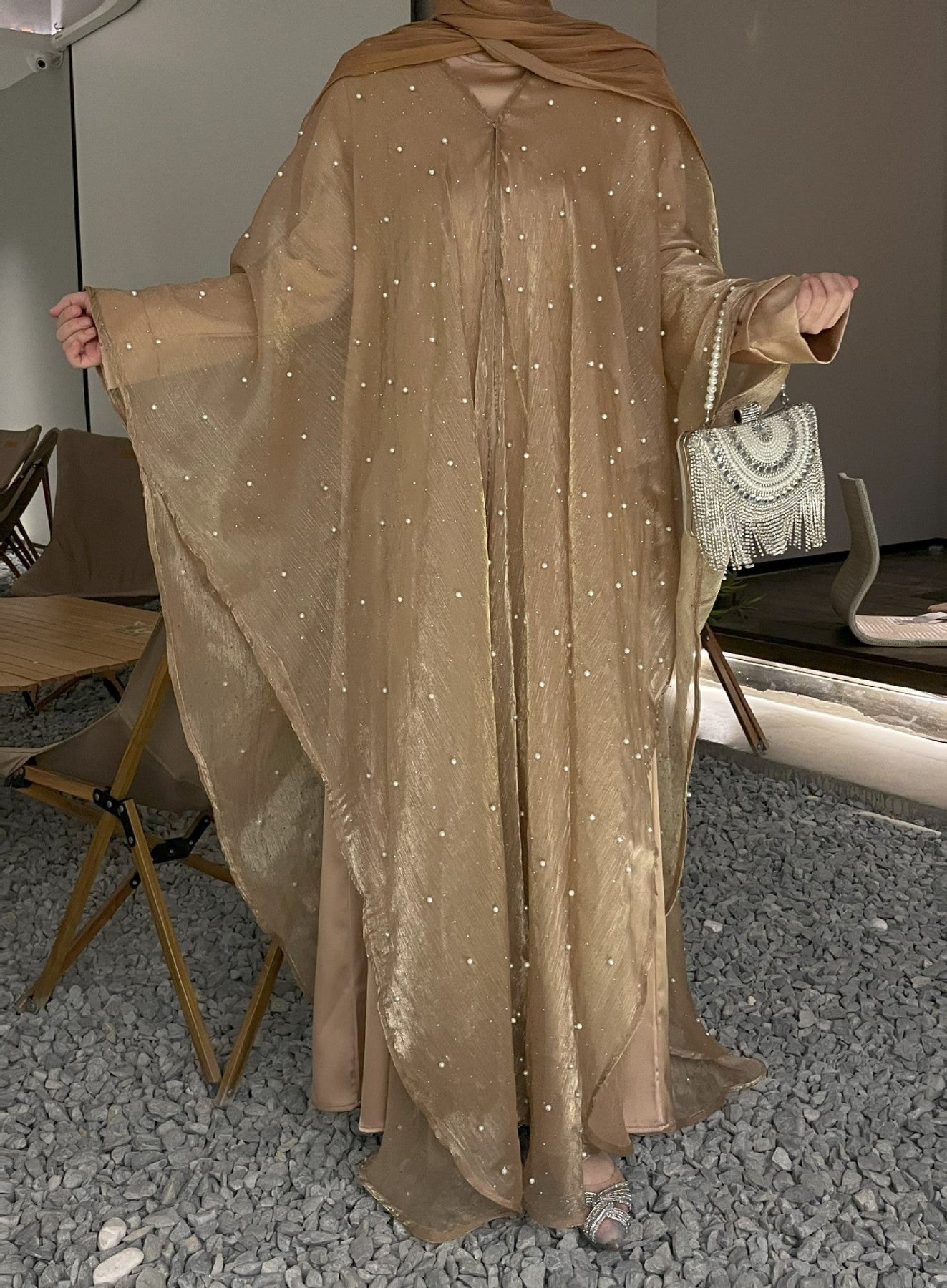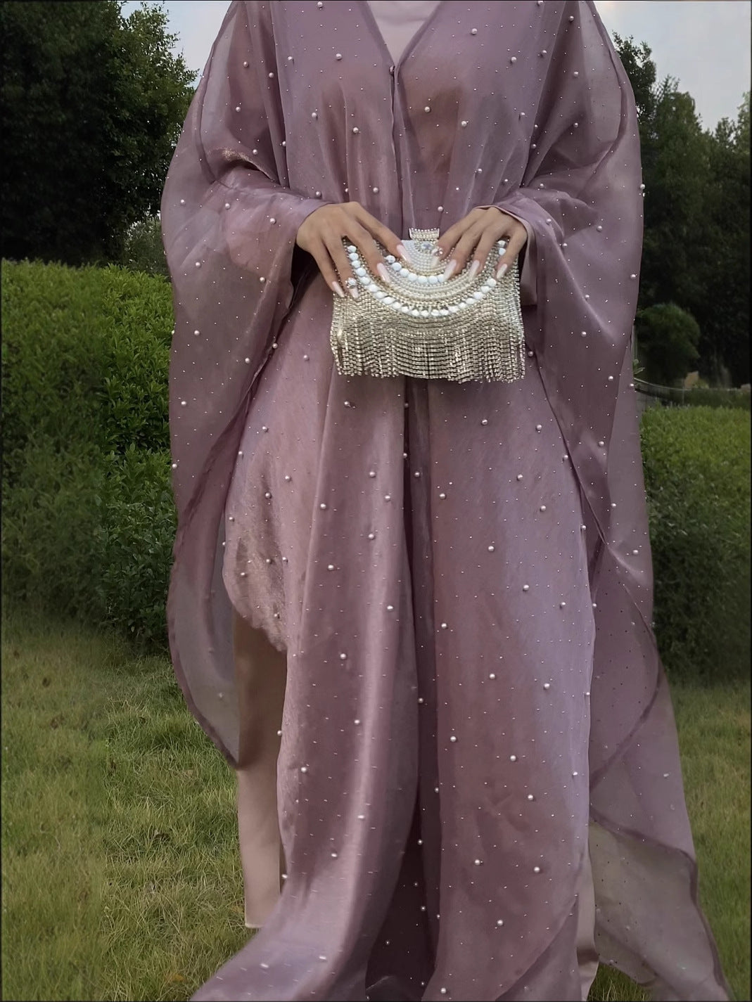 • Style: Pearl starry sky embellished modest dress set, Islamic elegant wear