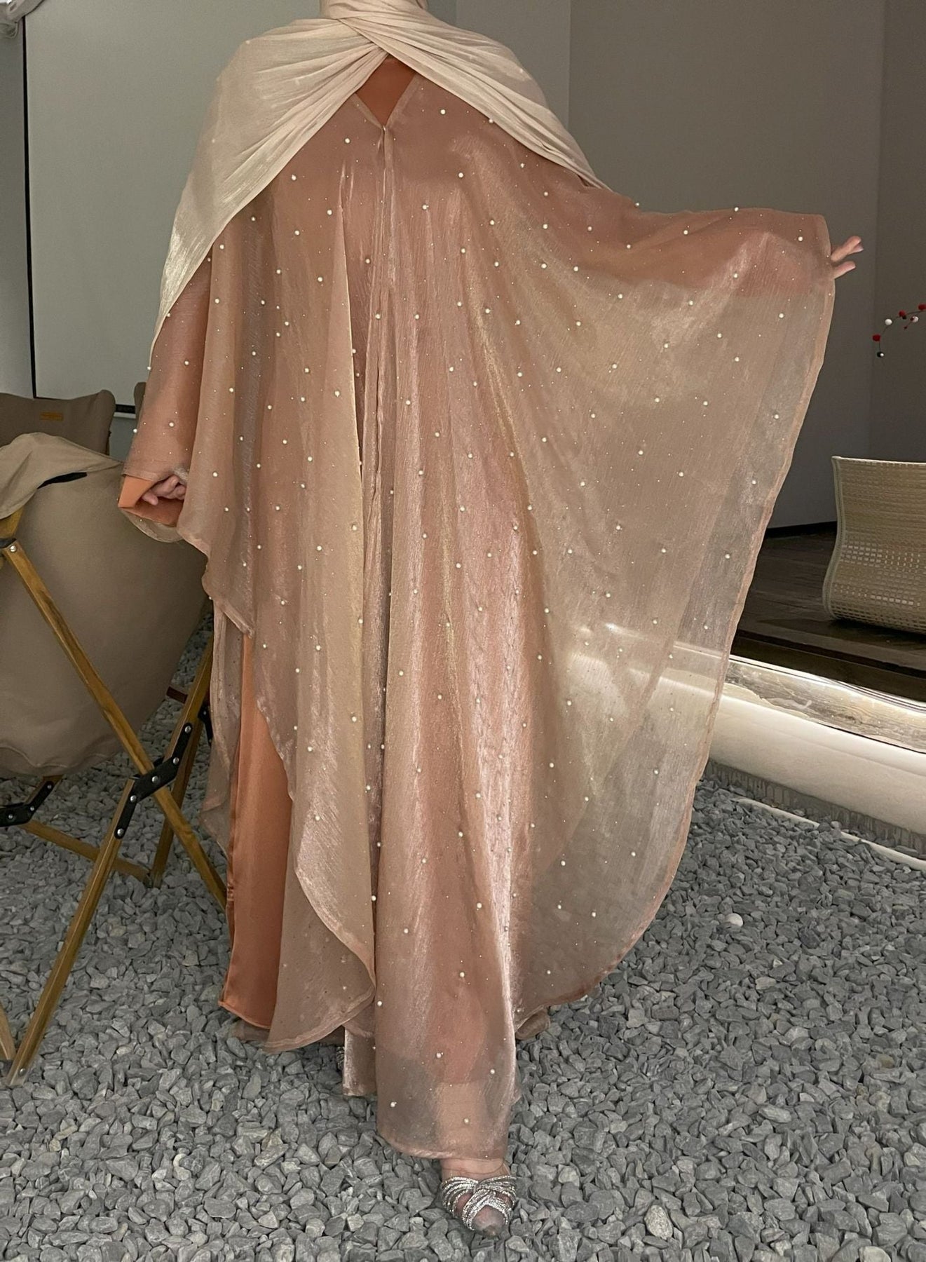 • Layer a lightweight abaya over the set for extra coverage outdoors