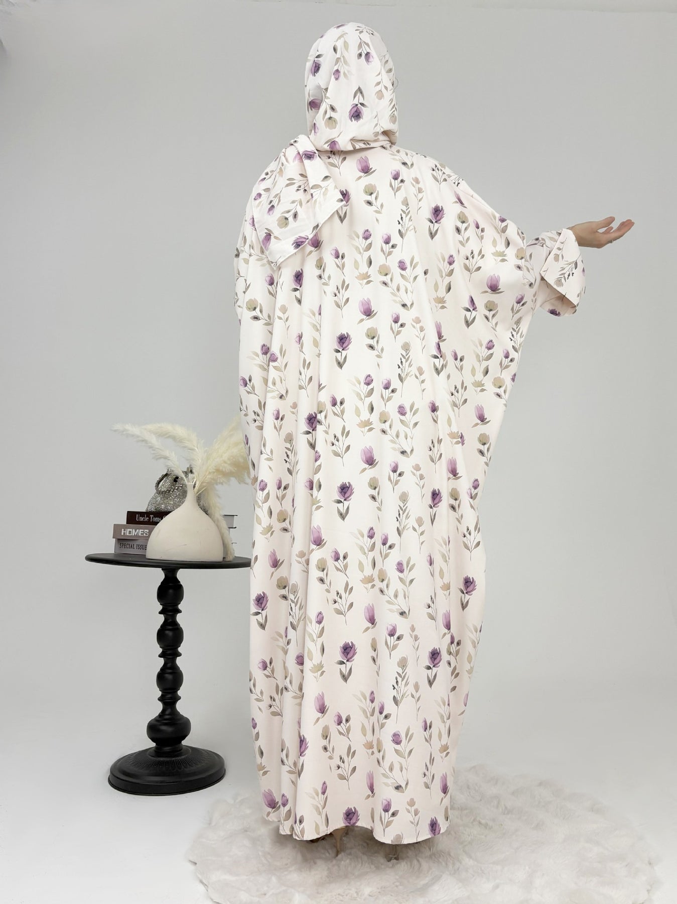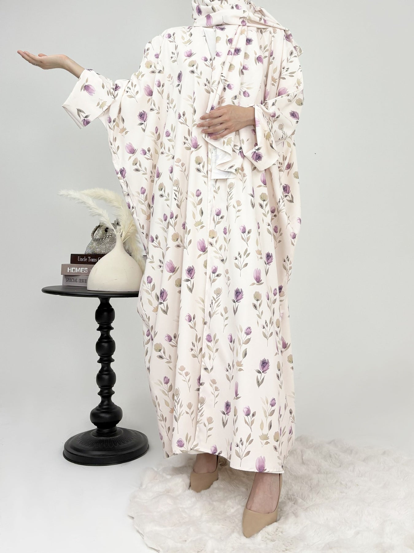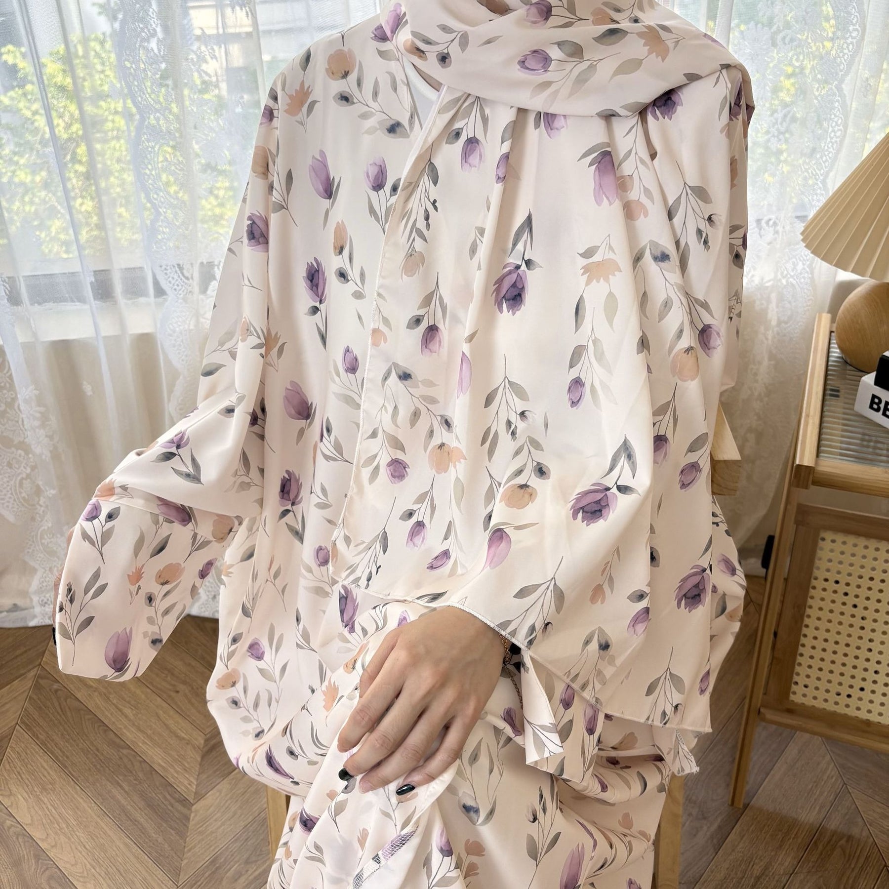 - Layer over a solid-color inner abaya or modest dress to let the floral print take centre stage
